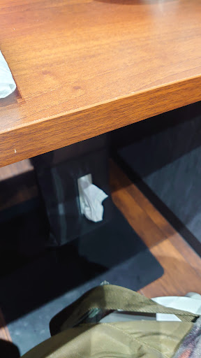 店内は、赤と黒を基調とした小洒落た内装♪ 床やテーブルの隅も綺麗に掃除されていて清潔感あり。 高級感のある割り箸、小皿の埃よけも見た目可愛くてテンション上がります♪ テーブルの脚に取り付けられたティッシュもいい!