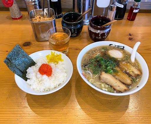 Read moreこの前移転オープンしたばかりなので 未だ未だお客さんぶち多いです 1時間半ほど待ちました。 でも、尾道のラーメン屋さんみたいに行列に並んで待たなくても、 名前と人数を記入すればお店の前のベンチでも駐車場の車の中でも待てるので車さえ駐車出来ればそんなに苦になりません! 店内も駐車場も前に比べると少し広くなりました。 頼んだのは 天らあめん+青ネギのトッピング 天らあめん肉盛り+半熟玉子のトッピング 鳥からごはん からあげ小 ギョーザ2皿 ピリ辛のモヤシは自由に入れられます 久しぶりに食べましたけど美味しかったですけど、 濃い味が合うとんこつラーメンのように、 天ラーメンも替え玉が出来るからでしょうけど? 味が濃いめです。少しお醤油辛く感じました。 チャーシューも少し濃いめでした。 鳥からもから揚げも餃子も美味しかったです!