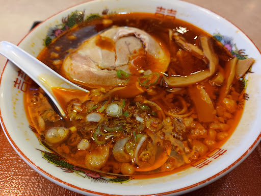 チェーン店のラーメン屋さんです。 店に入ると、スタッフさんが元気良くお迎えしてくれます。 メニューは、ラーメンの種類が多く、サイドメニューもいろいろあり、通い詰めても飽きがこないと思います。 辛い尾道ラーメン「閻魔ラーメン(税込730円)」が気になってオーダーしました。 5分少々で提供され、店内にたくさん置かれていたコミック雑誌を選ぶ暇がありませんでした。 辛い料理が大好き人のため、期待をしていましたが、ラー油入りチョイ辛で、食べていると汗がじわっとにじむくらいです。 でも、このくらいの辛さが、尾道ラーメンのスープの味をしっかり感じることができます。 麺も独特の食感で、スープが良く絡みます。 量が少な目のため、満腹感を感じたい方は、麺大盛やセットメニューをお勧めします。 建物が古いのですが、整理整頓され掃除をしっかりされていると思います。 トイレが男女別室で、広いため、女性は安心し...