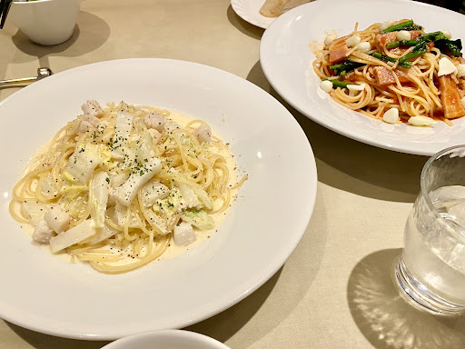 Read more当日に予約していきました。 子供連れでも快く迎えていただけました。子供用の椅子、食器も準備してあり、ありがたがったです。 Aランチをオーダー。ミネストローネのスープ、サラダ、バケット、パスタ、ドリンクのセットです。バケットは1回はおかわり可能だそうです。パスタは明太クリームソースとトマトソースを頼みました。クリームソースが好みでした。子供と取り分けるために2つとも大盛りをオーダー。大盛り代は300円でした。 デザートセットを380円でつけました。ピスタチオのアイスと洋梨のタルト、ヨーグルトのムースでどれも美味しかったです。 箸を落としてしまった時もすぐに気付いて拾ってくれて、取り替えてくれたり、子供への気遣いなども含め、とても気持ちのいい接客でした。 ...
