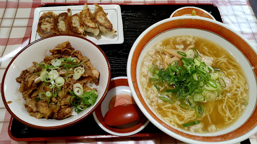2023 日曜の18時過ぎに訪問、ラーメン定食(950円)を注文しました。たぶん地元の方で店内はほとんど埋まっていました。 豚丼がとても美味しくて餃子も自家製で餡が詰まっており食べ堪えがありました。ラーメンはあっさりしており食べやすかったです。 ありがたいことですがボリュームが結構あるのでお腹を空かせていないと食...