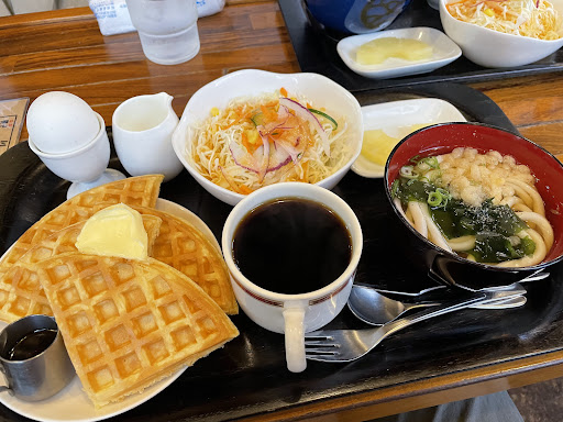 まず朝 モーニングに関しては おにぎりモーニング以外は、うどんがあっても箸はつかない! ワッフルでもトーストでも、うどんはあっても箸はつかない! フォークで食べなさい!