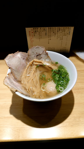 塩そばを食べに来てこんなこと言うのもヘンなのですが、僕は基本的に醤油系や豚骨系のラーメンが好きで、塩ラーメンへは『味が薄い』とか『上品ぶった感じが合わない』etc...あまり良いイメージがありませんでした。 それは本当に美味しい塩ラーメンを食べたことが無かったからだと思います。 ですがこちらの塩そばは全く違いました。 確かに小洒落た店構えで店内も綺麗だし、僕の期待している店構え(古くて年季の入ったお店)ではありませんでしたが味はピカイチ✨ スープはアツアツでマッタリとした口当たり。 雑味がなくてずぅ~っと飲んでいられます。 麺は幅広の平打ち麺で口に含むとツルツル、モッチリ食感に驚きます。 僕、実は平打ち麺も好きではないんですよね~。 今まで食べた平打ち麺はみんなカップ麺のような味や食感でイマイチだったし苦手意識があったのですが、こちらの麺は全然違います。 本当に美味しい! 大きめのチャーシューは柔らかくて良い感じ。 箸でメンマを持ち上げるとおよそ30cmはあろうかという長さにビックリしました。 穂先の方は柔らかく、太くなるにつれて歯応えが増していきます。 最後に煮卵を食べたのですが少しかための半熟でした。 唯一この煮卵だけは僕的にはイマイチだったかなぁ。 半熟卵は僕もよく作るのですが、この塩そばには合ってない味付けだったように感じました。 でもトータルでは知り合いにお勧めできる唯一の塩ラーメンのお店だと思います。...