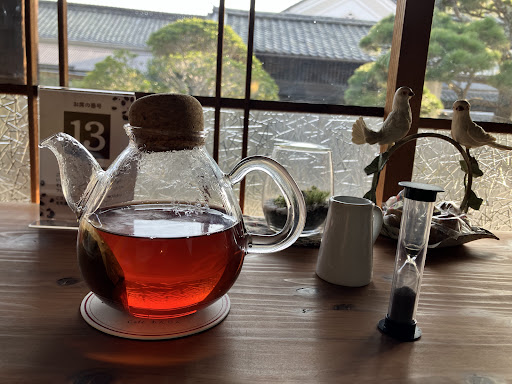前回のカレーはひよこ豆たっぷりでとても美味しかったし、今回のアップルパイも注文してから焼いてくれるので時間はかかりますが、焼きたてにアイスクリームを添えて食べるのは最高でした。 ミルクティーはポットサービスなのでおかわりできてお得感があります。 古民家の昔ながらの窓ガラスから入る日差しがいい感じ🎵 ぼーっと庭を眺めながら、まったりしたくなります。