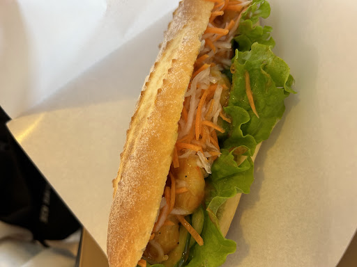 Read more以前にYouTubeで見て14時頃に1人で伺いました。メインになるバインミーの種類の多さに驚きます。初めてのバインミー、お店の人にオススメを聞くと、ベーシックなサイゴンを進められて、ベトナム式練乳コーヒーと一緒に注文すると、それならセットにするとお得に同じ物が食べられますよって。優しくて感じが良い‼️ベースのフランスパンをトーストするからか少し待ちましたが、到着して1口食べると。びっくり‼️美味しい‼️フランスパンなのにサクッと噛み切れる軽い感じで挟んでる具材の食感の楽しい事ったら。速攻で1本ペロリでした。とても美味しかったのですが、サンドイッチ1個700円は少しコスパ悪いかも?で星1つマイナス。でも美味しかったので他の種類も試してみたくなるバインミーでした。私はパクチーが無理なので取ってもらいました。好き嫌いにも対応していただけるっぽいので、色々言ってみても大丈夫かもしれません。責...