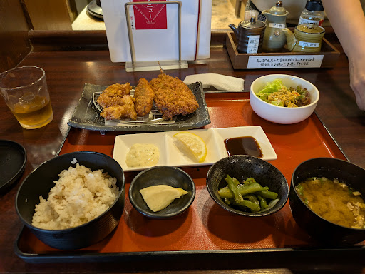 Read more久しぶりにランチに来ました。待たれたお客様いましたがカウンター選んだのですぐ座れました。中年位の男性の接客が素晴らしいです。 後から失礼します…と言われ冷たいお茶を下さいます。注文を聞かれる時も丁寧でテキパキ! 私も販売員した時を思い出しました。 凄く感じがよくてこの接客にまたしてもらいたい!とまた来ようと決める程です👏 ランチはミックスフライ定食です。 鯵のフライ 白身のフライ 唐揚げと 1つずつですが最近は冷凍が多い中 本当の鯵!サクサクふわふわ…男の方が 専属で揚げ物されてます。キッチンが広く お客さんに見れる形です。揚げていれたら 毎回手を洗われてます。衛生的です。 ご飯も白飯 麦いりご飯 炊き込みご飯から 選べ 量も少なめ普通大目と選べます。 麦いり少なめを選びました。美味しかったです。少なめには−30円引いて下さいました。 至る所にお客さんの気持ちを配慮されてて 素晴らしいです。漬物も大根と茎わかめ?かな のピリ辛味 こちらも美味しかったです。 これで1250円でした。とてもリーズナブル! お腹1杯になりました。感じよい接客に スペシャルな揚げ物!また来ようと思います。 ...