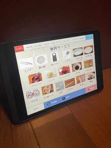 悲しかったのは店員の対応です。 その女性店員はトング入れの中を確認し、無言。 他のテーブルの物と取り替えようとした後(汚れていたと思われる)無言で厨房の方へ消えていきました。 しばらくして、トングとトング入れを持ってきましたが、洗ったであろうトング入れは水が滴る程濡れたままで、おまけに少し汚れが残っていました。 失礼しました...