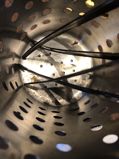 トング入れを確認すると、油と肉の破片。 写真のような状態でした。