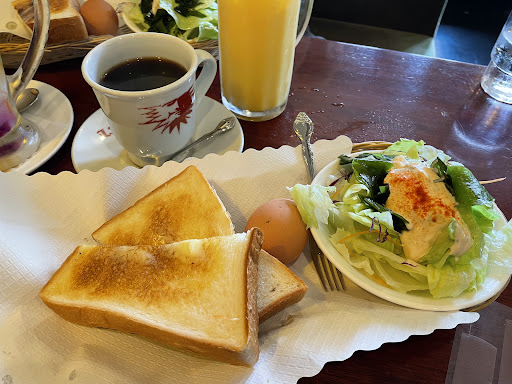 Read more美味しかったです。が、他の方のクチコミにもあるように年配の女性店員さんの態度や言葉遣いに少し不快感がありました…早口で「モーニングしかありませんから」とだけ言い立ち去られ…かたや後から入店された方にはメニュー表(おそらくドリンクのメニュー表)渡されていたり、常連さんと思われる方にはタメ口… 奥で調理をされていてる年配男性や若い男性店員さんの態度や言葉遣いが良かっただけに際立ちました… 食器をさげる際のガチャガチャとした音ももう少し静かに出来ないのかな?とか思ったり… 案内された席、テーブルが濡れていました(拭いた後の水が少し残っている感じ、ではなくついさっきまでお冷のコップ置かれてた…?と思わせるような水の量でした) 美味しかった...