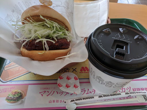 モスではいつもロースカツバーガー(ソース控えめ)を食べるのですが、今日は期間限定ご当地モスの「加古川デミグラ牛カツバーガー」をソース控えめで注文しました。メニューの写真ほど厚い牛カツではありませんでしたが、柔らかい牛肉で美味しかったです。コーヒーが紙カップになったのはチョット残念です。