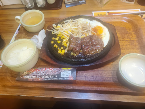 Read more安くてライスおかわりしほうだいなので、ガッツリ食べたい時にオススメです。 ドリンクバーがついてくるのが嬉しいです。 コーヒーや紅茶などしかないのでお子様がいるとジュースなども欲しいかもしれませんがじゅうぶん満足できます。 ステーキよりもハンバーグの方が美味しいと思います。 ステーキソースや和風ソースや辛いソースなどもありますが塩コショーが美味しいです。 鉄板で出てきてアツアツをいただけるのが嬉しいです。ソースのとびはねが心配な場合は紙エプロンを用意してくれたり、テーブルにあったりするので防御できます。テーブルに運ばれてきて蓋をあける時にも聞いてくださります。 ハラミカットステーキは柔らかく食べやすく美味しかったです。 チーズハンバーグはすごい量のチーズがかかっているので思った以上に食べごたえがありこってり感がすごいので後半は...