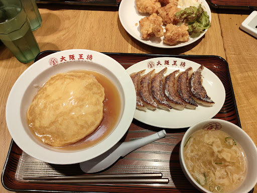 Read moreここのお店は、大阪王将のお店の中でも最低ランクだと感じた。 まず餃子を頼む際、よく焼きでオーダーし、店側もオーダーを受け付けた。 出てきた餃子は、よく焼きでもなく普通の餃子。お店によって対応していない店がある事は知っているが、オーダーを受け付けたのに、対応しないのは詐欺ではないのか?出来ないのであれば、最初から伝えるべきではないのか? 天津飯は、玉子は小さくご飯が見えており、餡もかなり少ない。普通に食べ進めると、最後はただの玉子と米になった。 サービスで付いてるスープも、持ってきた時には既にお盆の上に半分位こぼれた状態。 普通は入れ直すよね? 誰かの食べ残しを出してるの? 色々な大阪王将に行ったけど...