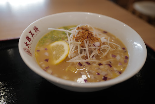 2024年、9月。土曜の朝7時台。行楽日和とあってか、早朝から賑わっている。新しい限定メニューがあったので注文。 鶏白湯のスープはアッサリしているが塩っ気がきいている。全体に振り掛けられた魚粉によるものかな。 フライドオニオンと紫玉ねぎの、それぞれ違うザクッとした歯応えが面白い。 瀬戸内の名産、レモンの輪切りが添えてあって後から爽やかな余韻を口に残す。 それにしても、ここは限定メニューが多くてワクワクする。イ...
