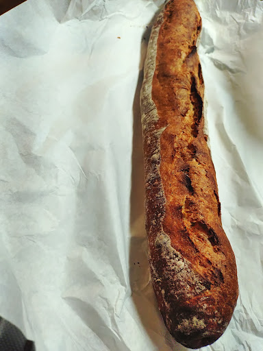 初めてみた時、全体的に高い。が第一印象でした。 20センチくらいのうぐいす豆のフランスパン 200円はまあまあかなって思って買ってみるとかなり美味しい。 外はカリカリでうぐいす豆の甘さが引き立つほんのりしょっぱいフランスパン。 美味しいコーヒーが飲みたくなり 値段相応だと認識を改めました。 美味しかったので 次にナッツが4種類入ったフランスパンを購入 大きさは先程のパンと同じで220円 食べてみるとかなりの量のナッツがゴロゴロ パンはザクザクだけど口が切れるほど硬いわけでも(そういうの好きだけど)やわらかすぎるわけでも、水分取られすぎてボソボソな訳でもなく歯切れも良く美味しい。 これは逆に安いのではないか?と 確かに見た目の量に対してだけ見たらコスパ悪そうに見えるけど 質を考えると全然高くない かなり好印象です。 フランスパンに関しては評価は満点5です。