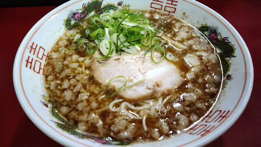 そしてそれらの上から結構な量の魚粉が振りかけられています。 お出汁はこちら由縁なのでしょうか。 スープを飲み干す際には沈殿した魚粉がたくさん見られました。
