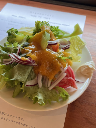 地物の採れたての美味しいお野菜がサラダバーでいただけるのは嬉しい! ドレッシングも旨い(^.^)