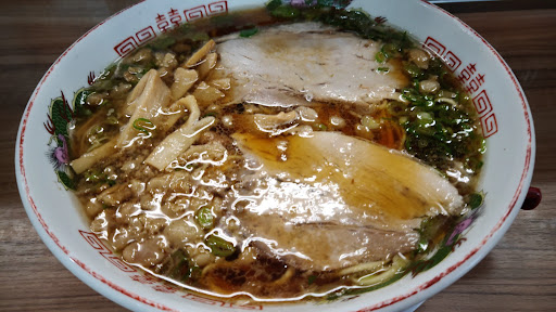 次にチャーシューメンですが、チャーシューは尾道ラーメンによくあるパサパサ系。特に可もなく不可もなく、昔の朱華園はに近かったと思います。麺は朱華園より少し大味な麺でした。 肝心のスープですが、昔の朱華園と比較すると旨味が無いので相対的に辛みがひきたっちゃってます。 昔の朱華園も醤油辛いものだったのですが、ちゃんと旨味があったので気にならなかったがこちらは味が薄くただ辛いものだと思いました。