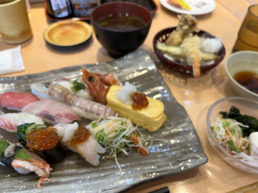 寿司は、普段の寿司より酢飯の風味が濃かったので、最初は戸惑いました。食べ進めると気にならなくなり、ネタの味を楽しめるようになりました。 天ぷらのタレは濃いめなのですが、これくらいが私は好きです。