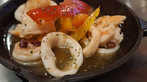 こちらのぉ店前には、ど~んと↗️大きなヘラが建っており😱❕気になっていたので...鉄板があるのを事前にチェック👀し⤴️初🔰訪問させて頂きましたョ🎵土・日・祝日は、満車🈵️🚘️ですので、平日夕方に、ぉ邪魔させて頂きましたョ💦先客の方々は、①組しかおられませんでしたので😊ワンオペでされているのか?おっとりとした優しそうなマスター❓️が注文を聞きに来られたので😞💦早速オーダー✌メニューに辛麺があるのを見て👀★お好み焼き・イカトッピングの唐辛子麺★をチョイス✌あと★シーザーサラダ★と★エビとイカのアヒージョ★も追加オーダー✌待つこと⑧分程で、シーザーサラダ到着、その後、アヒージョも到着。満席状態の場合は、少し待つかもですネ😞💦エビとイカのアヒージョは、大粒のプリっぷりのエビ🍤とイカの輪切りと、黄色と赤のパプリカが入った鉄皿でしたが💧残念な事に💧熱々ではなかったので残念でしたネ💦奥方曰く…自分が家で作った方が熱々との事です😱❕暫くして、お好み焼きがやって来ましたョ🎵熱々の鉄板上で1口頂くと…あれっ❓️唐辛子麺が辛くない?気を取り直して、2口目も、ぉ互いが辛くない?こちらのぉ店のメインは、鉄板焼きかもですネ🎶先客の方々が、色々な鉄板焼きメニューをオーダーされておられ、美味しい⤴️美味しい⤴️と申されておられましたョ🎵次回は、鉄板焼きメニ...