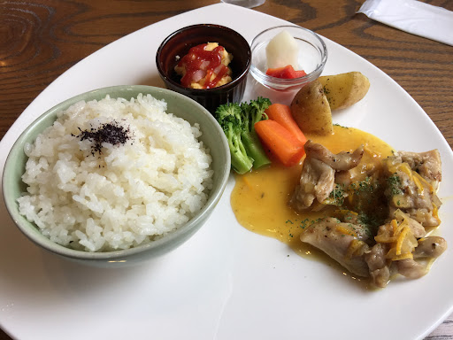 料理の量は少なめでしたが、とても美味しかったです。 ドレッシングもとても美味しかったです。 パンとご飯から選べます。ご飯の場合は大盛りも無料です。