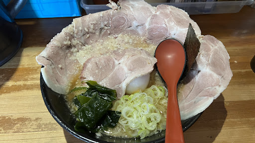 Read more通りがかったので入りました。替玉の声が聞こえるので調べると替玉1つまで無料のようです。 豚骨ラーメン以外で替玉って珍しいなーと思いつつ喫食。(、、、と思ったら豚骨ラーメン屋なんですね😅) チャーシュー麺を頼みました。 替玉ありと言っても味は濃いわけではなくちょうどいい状態。 チャーシューは薄切りで味が濃くないので麺と絡めて美味しい系です。口の中で溶ける感じではなく、形は保ちます。 卵は普通でしょうか。一応半熟を目指して作ってるようですが、私のは固茹でになっていました。 麺は太麺でボソボソ言うような感じだけどラーメンという感じがある無骨さがある麺です。 ラーメンショップというだけありニンニクがあって良いです。 味は美味しいと思いました。