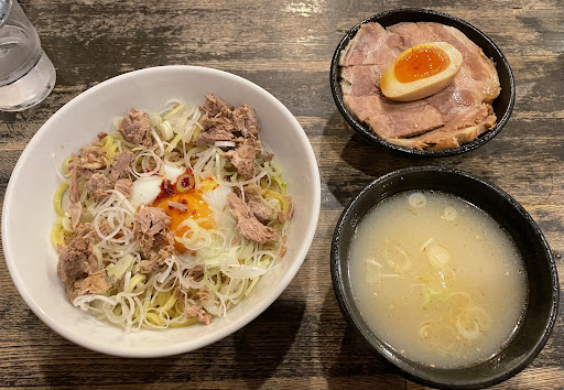 Read more・「良い・悪い」という一元的な評価が難しい店。 ・ラーメンは鶏メインのだしでメニューによって背脂や鶏チャーシューなどトッピングで差がつく。基本的に塩が強め。好みはあるが味は普通に良い。店の混み具合にもよるが頼んでから着丼は早い。 ・まぜそばなど汁なし麺、チャーシュー丼などサイドもそこそこ豊富。つまみメニューもありで喫煙は時間帯で可能(今は変わっているかもしれない)、居酒屋使いもできる。 ・店員さんは時間帯?などて変わる。普通の夫婦っぽい人も見かけるがオラついている人、トッポイ人がいてそういう類の人が苦手な人は敬遠するかもしれない。 ・店内の衛生についてはやや残念な感じ。机の上の布巾が臭く床も埃が多い。 ・まとめると「食べ物自体は旨いが各ポイントで好みが別れる店」自分の趣向と合えば最高、そうでないなら…とい...