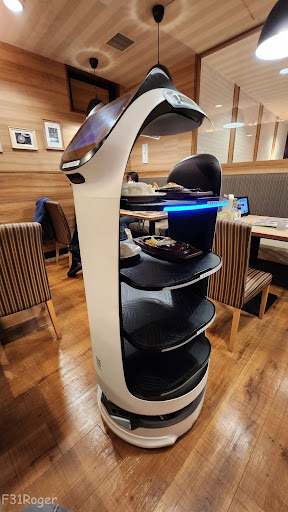 I actually had the robotic cat deliver my food!! It was totally unexpected and I didn't even know what to do afterwards.. someone came up and showed me to push the button so the robotic cat can go back.