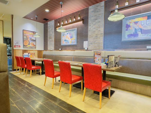 ロピアやセリア、マツキヨ、gu、スタジオアリスなどが入った施設内にあります。 施設前の道路がいつも混んでいる印象。 駐車場も混んでます。 タッチパネルで注文です。 ステーキの焼き石も無料で追加できるので、食べるのが遅い子供には助かります。 子供用に無理のアイスキャンデーがありました。 すかいらーくのアプリで子供のセットが99円だったりする事も。 サラダバーや、ドリンクバー、ソフトクリームやかき氷もあります。 ご飯、カレー、バターロール、ジャム、バター、生パイナップル、生野菜など子供も大人も楽しめました。 ドレッシングや、ステーキソースの種類もいろいろ試せます。 サラダバーはメインとは別料金で550円くらいです。つけなくてもOK。 案内と料理の提供、会計のレジくらいしか店員との接触はありません。 ですが子供が飲み物をこぼしてしまった時に、すぐにおしぼりを持ってきてくれました。きちんと客席を見てくれているんだなと思いました。 トイレは店の外ですが、出入口をでてすぐです。 子供がお子様のパンケーキ(クーポンで99円)を注文してついてきたメープルシロップ。 トーストしたバターロールにバターを塗って、ソフトクリームを乗せてメープルシロップをかけ...