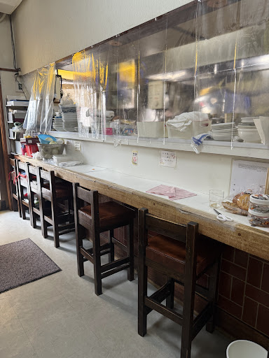 日曜の開店時間前に到着するが、もう暖簾が出てて開いてる 店内ちとゴチャってて年配のご夫婦で経営されてるみたい カウンターは使用出来ず4人掛けのテーブルと2人掛けのテーブルが2つの狭めの店内