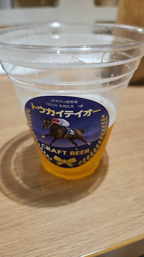 Read more2025年9月開催に合わせてオープンしたとのこで、お目当てのレースを観終えた後に訪れました。 注文したのは揚げ餃子(5個入り)とビールのセット。ビールのカップには1993年の有馬記念を制した時のトウカイテイオーがあしらってありました。 餃子がもう一回りほど大きいと食べ応えが増すのでは?とも感じましたが、手早く食べられるという点ではちょうど良いのかなとも。