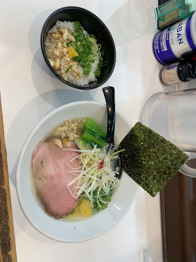 6月の休日の昼間に1人で行きました 大通りに面した場所にあるので自分と同様に初めて行く方もたどり着きやすいと思います 店内(内装)は古びていますが汚くはないと思います 外国人の店員さんが2名で仕事をしており入店するとすぐ右側に食券機がありますので購入し席に着くと店員さんに渡します(ちなみにこの券売機は高額紙幣は使えません) お冷やはセルフサービスです 店内に流れているラジオを聴きながら待っていますと注文した濃厚海老そば&味玉が来ました まずスープを飲むとおお海老っ!!そして旨いっ!!となりました よほど海老が苦手でなければ誰しもが旨いと思える味わいでついスープを全部飲み干してしまいました 炙られたチャーシューや味玉など他の具材も充分においしかったです 星4に留めたのは全体的には充分においしいラーメンなのですがパンチ不足というか特徴が弱いため海老好きな人以外はここ船橋ですと他のラーメン屋さんを選んでしまう事だろうと思いました それと駅近なので仕方がないのですがお店の駐車場が無いのはちょっと痛いなと思いました しかし自分的にはけっこう気に入ったのでまたの機会に海老ラーメン以外も食してみたいなと思いました そのためにもどうか人手不...
