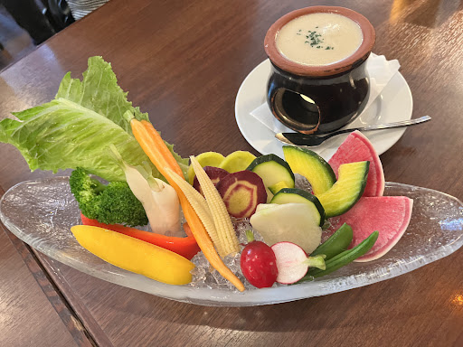 バーニャカウダがおしゃれ♡そして火をつけてきてくれるからいつまでも温かい。(焦げ付くから注意と言ってました)お野菜もカラフルで氷に乗せてくれてるから新鮮でした⭐︎味ももちろんGOOD!