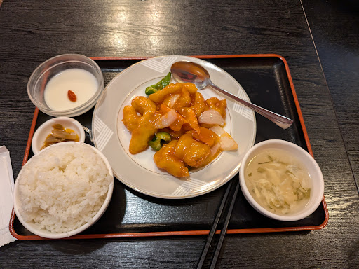 Read moreこの地域には珍しい香港料理のお店。最近のこの手のお店では台湾料理店が多い中で、貴重な存在です。 中華料理は大別して、東西南北の4つに分かれますが、具体的には(東)上海料理、(西)四川料理、(南)広東料理、(北)北京料理となります。 その中で香港料理は、広東料理に分類されることから、いわゆる清淡な味付けが主となってます。素材の味を生かす料理が多く見受けられるため、北京料理や四川料理と比べると、油や塩分が少ない傾向にあり、あっさりとした味に特長があります。 新京成線前原駅から、徒歩2分程にある店舗です。お店の前には7台の駐車スペースがありますが、帰る時には満車となっていました。車で来るお客さんが多いようです。 ランチメニュー15種類は、ライス(大盛無料)、ザーサイ、スープ、杏仁豆腐付きで780円〜920円とリーズナブル。 エビのチリソースセット(920円)、チンジャオロースーセット(830円)、麻婆豆腐セット(780円)を全てライス大盛で注文。 それぞれの味の感想です。 エビチリは、大きめのエビが8つあり、プリプリして美味しい。パリパリに揚げられた餃子の皮がとろりとした餡とよく絡んで歯応えが楽しめる。ケチャップは少なめ。 チンジャオロースーは、豚肉とピーマン、筍が同じ厚みで丁寧に細く切られているので食べやすい。油通ししているからか、野菜はシャッキリとしている一方で、豚肉は柔らかい歯応え。あっさりとした味わいは、広東料理の流れを汲む香港料理ならではのものです。 麻婆豆腐はそこそこの辛さ。花椒のシビレもあり、ライスがすすむ美味しさです。辛さが苦手な方には、少しキツイかもしれません。 全体的に味は麻婆豆腐を除いてパンチは効いていませんが、体に優しい気がする美味しさ。杏仁豆腐は水分少なめで濃厚な味わい。 ボリュームは女性に丁度良いくらいで、健啖家の男性には物足りないかもしれない。 ホールの女性アルバイトが着用するユニフォームがチャイナドレス風で、雰...