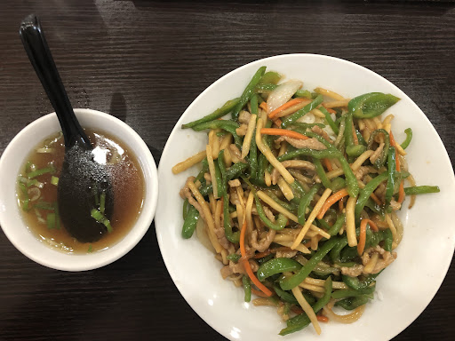 Read moreランチで訪問。 青椒肉絲丼と餃子単品をオーダー。 おー、ナイスボリューム! ご飯が見えない!アタマだけ頼んだみたい! うん、美味しいです。 歯応え抜群、味濃いめ、ご飯との相性抜群! 中華スープも味濃いめ。 遅れて餃子登場!割とデカめ!頼み過ぎた? うーん、ウマイ!餡ギッシリ!アツアツ! これまたご飯に合う! でも絶対ビールも合う! 腹パンパンで終了! アイスコーヒーがサービス! これは予想外。嬉しい。 店員さんはとても親切。常に小走り。 素晴らしい!そんなに急がなくてもっ...