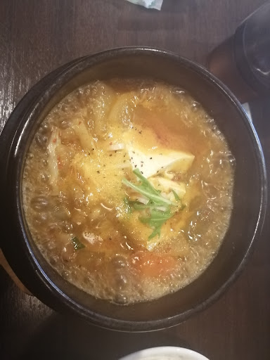 ・スンドゥブチゲ (豆腐が入ったピリ辛のスープ) 貝や卵が入ってました。 ピリ辛の加減がちょうど良く美味しかったです。