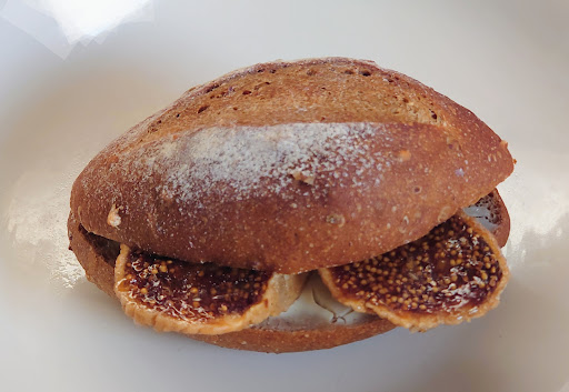 「イチジクとクリームチーズ」、歯応えのあるフランスパンにサンドされた、イチジクの甘さとクリームチーズの酸味の相性はピッタリ。