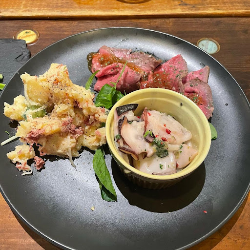 ◎良いポイント ●料理のボリュームと味わい まず感じたのは、料理のボリュームが非常に多かったことです。 特にピザやローストビーフは見た目の迫力もあり、食べ応え十分でした。ピザは直径が大きく、生地がもちもちでトッピングのバランスも良かったです。 チーズがたっぷり乗っていて、程よい塩気が食欲をそそります。 ローストビーフは、柔らかい食感で噛むたびに肉の旨味が感じられ、特に肉好きにはたまらない一品でした。ソースも濃厚で、全体的に満足感の高い料理でした。