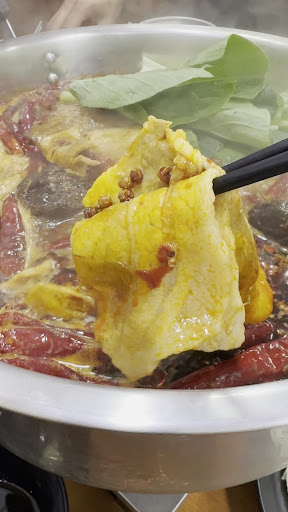 Honestly, this is the most delicious hot pot I've ever eaten! When I first started eating, I was thinking, ``Huh? Maybe it's not that spicy,'' because there was a barrier from the sesame oil, but halfway through, I started sweating, even though it was spicy and cold.