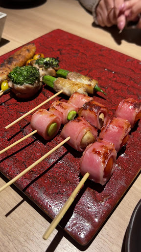 ♦︎お店名物!野菜巻き 新鮮なお野菜をお肉で巻いた野菜巻き いろいろな種類があります。 串焼きは値段の割にはネタが大きく新鮮な素材を使っており美味しく頂きました。 串焼きというと焼鳥が思い浮かびますがこちらのお店は特に野菜串がおすすめです。 頂いたのは ✴︎レタス巻き 300円 ✴︎万ネギ巻き 250円 ✴︎海苔チーズ巻き 250円 ✴︎トマトベーコン巻き 250円 ✴︎レンコン巻き 250円 ✴︎バナナ巻き 300円 バナナ巻きが一番好きかも! 豚肉とバナナの相性抜群!甘しょっぱい味がクセになります。 バナナ巻きは甘いバナナが更に甘くなり、最後にデザートで食べて方がおすすめ!