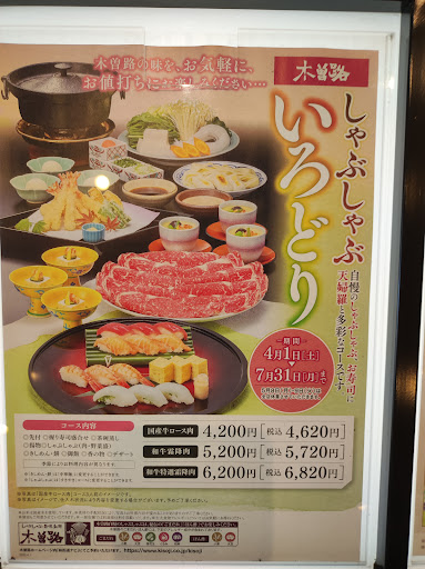 Read more(25年夏再訪) パートナーシップ会員になると、自身と家族の誕生月に特典付きコースの案内がハガキで送られてくる(翌月まで有効)。今回はその「記念日特別コース」の、和牛霜降り肉しゃぶしゃぶコース(税込一人7,370円・要予約)を利用した。 せっかくなので、追加料金10%を払い個室にて。先付(松前漬け風の筑前煮)、盛り込み(牛ステーキと蟹)、しゃぶしゃぶ(すきやきにも変更可。野菜たっぷり。肉は一人前追加サービス付き)、ご飯、香の物、焼き餅付きしめん(中華麺にも変更可)、デザートという内容。味はもちろん安定の木曽路の美味しさ。腹いっぱいで、大満足! 特典のケーキ(乾杯のスパークリングワインのどちらかを選択)は、食べきれないので持ち帰りにしていただいた。 なお、鍋料理は、しゃぶしゃぶの最初の肉一枚ずつと野菜、〆のきしめんは、店員さんが作って取り分けてくれるので、あまり鍋料理づくりに慣れていないメンバーで行ってもやり方が分かって安心。 また、記念写真とたち吉製オリジナル小皿(日本製)がお土産でつくのも嬉しい。 ぜひ、次回の家族の誕生月にも利用したい。