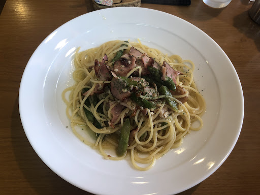 Read more【訪問店舗】Kitchen Elinbo(キッチン エリンボ) 【訪問月時】24年6月(木)12:31 【待ち人数/時間】なし 【入店時刻】12:31 【混雑度合】空いてる 【お店の雰囲気】明るい 【着席時刻】12:31 【席数】4人がけテーブル席×2、2人がけテーブル席×3、カウンター席×4 【スタッフ人数】厨房1人、ホール1人 【注文方法】席で口頭で告げる方式 【注文時刻】12:32 【接客】普通 【注文した料理名】アスパラとベーコンのペペロンチーノ¥1050 【メイン料理到着時刻】12:40 【注文~メイン到着時間】8分 【料理の内容】ペペロンチーノ 【料理の味】アスパラの量よりベーコンはちょっと固めのものが多数入っているが味が単調でありもっとアクセントが欲しかった 【支払い方法】R Pay or クレジットカード or 現金 【前払いor後払い】後払い 【退店時刻】12:59 【滞在時間】28分 【全体的な気づき(感想:良い点、悪い点、トピックス等)】 ①このお店の名前を探すのに苦労した。(お店の外や外看板等にも記載が見当たらず、メニューにも記載がない)が、最後に支払い時にR Psyで支払いを済ませると初めて店名が明らかになった。キッチン エリンボ →Kitchen...