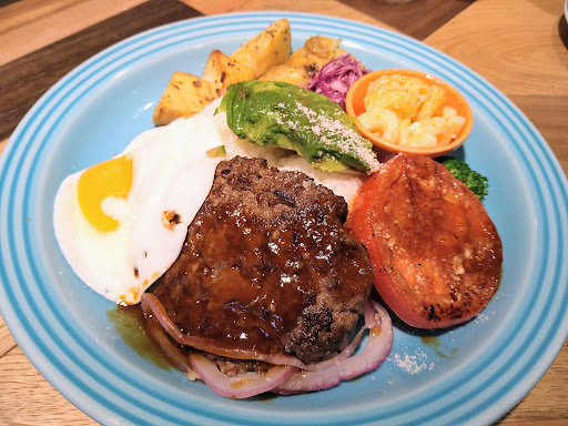 「ご来店は初めてですか?」と聞かれたので、初めてですと答えるとコーヒーやおすすめメニューについて丁寧な説明がありました。 料理はロコモコやタコライス、ハンバーガー、パンケーキなど、いかにもハワイっぽいラインナップ。 コーヒーやフレッシュジュース類も充実しています。