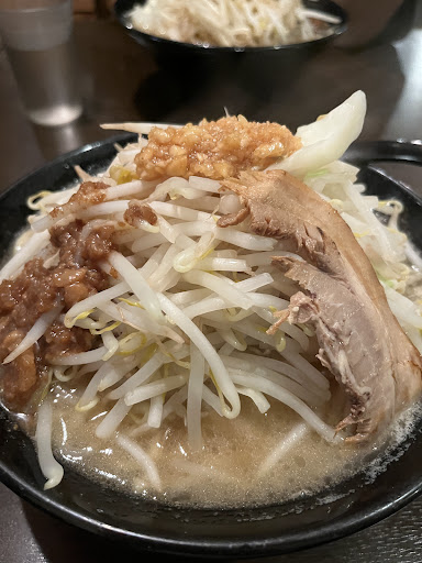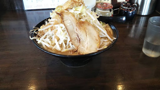 麺はまさに二郎系、硬めのガシガシと噛みごたえのある硬い太縮れ麺。 野菜はお湯通しただけで味ついてないので、上手に天地返しするテクニックが必要ですが。野菜が大量なので(更に無料で増せますが)天地返しした麺を食べ終わっても大量のもやしがスープの中にぎっしり残るので、麺を感触したあとが....長い.... 毎度思うけど、次回は野菜少なめにしよう、こんどこそ少なめにしよう。 ★3にしましたが、まあ気持ち的には★3.4くらい、味は平均以上のお店だと思いますが、今回食した二郎インスパイア系はあんま店により特徴が出ないので...ということで。