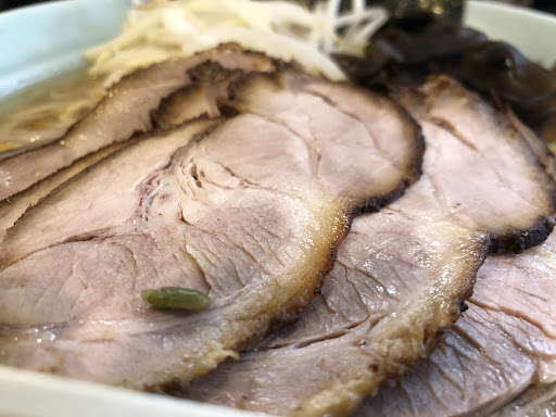 チャーシューは肩ロースで大きさや厚さは普通。 周りが黒かったです。 味付けは控えめで、脂身が少ないのでしっかりした食感でした。
