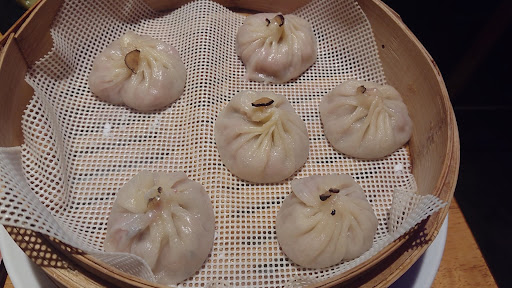 お待ちかね小籠包が到着。食べる前にその都度手包みしてくれるのはうれしいですね。 原味6個と、カニのはずですがトリュフ小籠包4個が到着。 うれしい間違え。カニも2個出していただきました。 結構スープが入ってるタイプでおいしいです。特に、トリュフ!これはぜひ食べてほしい! 原味の方が値段安いので注文しがちですが、原味もカニを我慢してでもトリュフをおすすめします。 小籠包の下に敷いてるシートに小籠包がくっついてしまい、いくつか破れてスープがこぼれてしまったのが残念。