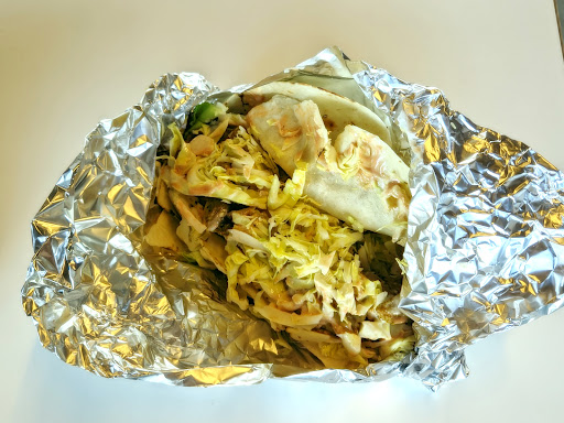 出来上がりは、皿なしで家庭用アルミホイルに包んだモノを手渡し。食べていくうちに中のドレッシングがトルティーヤに染みて柔らかくなり、大きくて食べるのに時間がかかるのに、アルミ箔が破れて垂れてきました。持ち続けるのも大変で慌てて食べました。