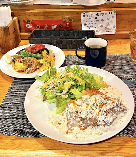 スープ、ドリンクも付いて『パエリアランチ』だけでも満腹になる量で週末にこの価格。 予約しないと入れな...