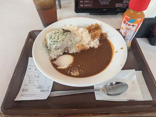 灼熱の焼きハンバーグカレーを食べたくて伺いました。江戸川区の取扱い店と記載されているお店に最初に行きましたが取り合っ扱っていませんでした。まぁ、そんなもんだよな。チェーン店なんてと諦念を無理やり飲み込んでこのお店に伺いました。 ビックリしたのは、駐車場もありお店も綺麗なのにガラガラだった事です。空いているってことは良いのですが、嫌な予感がします。つまり、美味しくないんじゃないかとか、接客に問題があるんじゃないかとか。そして嫌な予感の半分は当たっていました。 焼きカレーは灼熱ではありませんでした。おこげが出来るほどうつわが熱くはなりませんでした。北九州発祥の焼きカレーとは別物と思えば不味くは無かったです。しかし灼熱では無かったです。