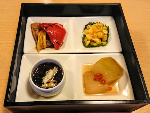 Read more江戸前のお寿司のお店。 ここにひっそりあるのは知ってたけど、回らないお寿司はなかなか食べられない。 お店はひっそりしてますが、店内はかなり清潔でびしっとしてます。カウンターのところに、巨大なピンクヒマラヤ岩塩らしきものがあります。 ランチを頼むと、食前酒(ジュースなどに変更可)、小鉢(しらこのポン酢でした、しらこはあんまり食べないのですが、これは美味しかったです)、茶碗蒸し(鶏肉、蒲鉾、銀杏、三つ葉の定番でなく、具としてさまざまな海鮮が入っていました、味は薄味、これが美味しかった)と握りとお味噌汁、水菓子が出てきました。 握りは小ぶりで、包丁なども細かく入れられていて、下味もしっかりしたネタもあるし、ご飯もしっかり味があるので、お醤油つけるなら極少量がよさそうです。卵焼きがおいしい。ネタはあっさりしていました。お味噌汁は芽ネギの散らされた上品なものでした。 あと、器もセ...