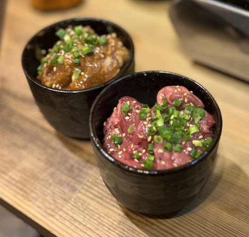 🌸チョレギサラダ 間違いない1品である。 🌸食べ比べ牛タン 霜降りタン塩とゆずこしょうタン。 どちらも美味しかった。 サッパリとした柚子胡椒を先に。サッと焼い食べる。 霜降りもレア気味で食べたらうまかった。